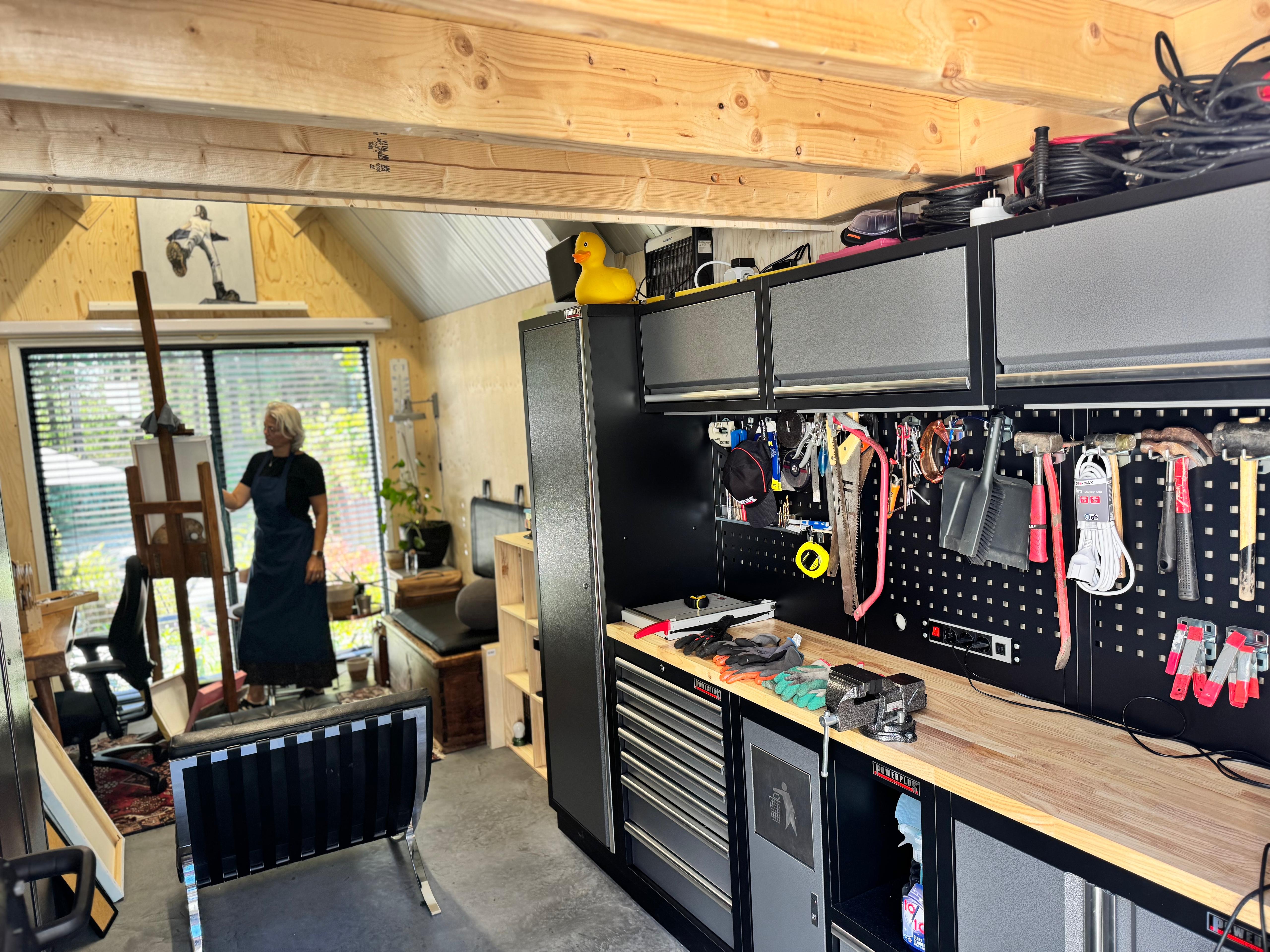 Eine ordentliche Werkstatt spart Zeit, Nerven und macht jedes Projekt angenehmer. Das hat auch AnneMarie, Lehrerin für Kunst und Handwerk, erlebt. Aus einer feuchten, unbrauchbaren Schuppenhütte wurde mit der richtigen Planung und den Werkstattschränken von Powerplustools ein professionelles Atelier, das nicht nur funktional ist, sondern auch optisch überzeugt.