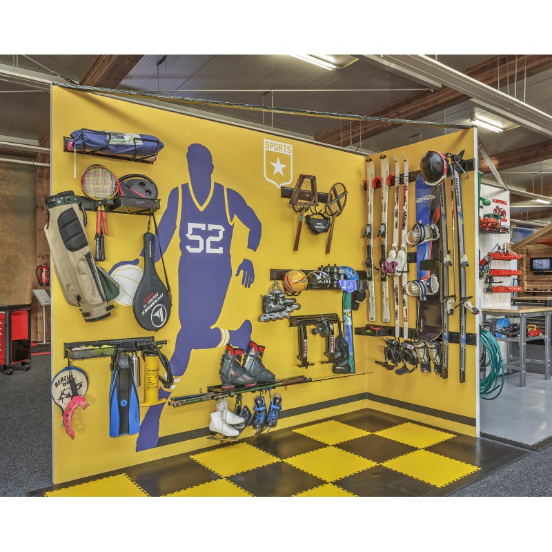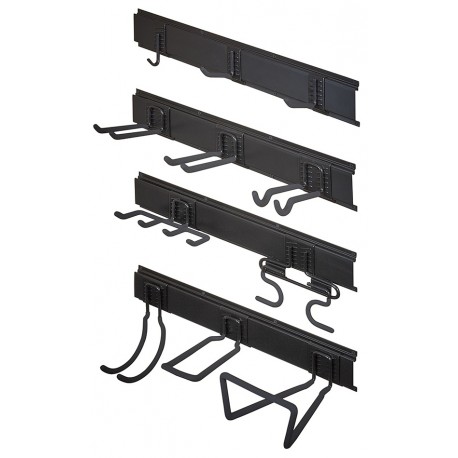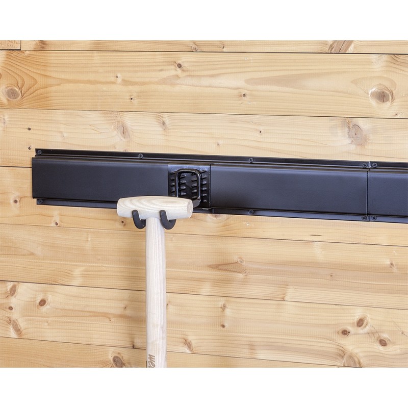 Mit dem Gerätehalter Set sorgen Sie auf schnelle und einfache Weise für Ordnung in Ihrem Garten und Ihrer Garage. Sie befestigen die Schienen mittels Schrauben horizontal an die Wand und benutzen dann die verschiedenen Powerplustools Hakensysteme (klickbar ohne Werkzeug) um Ihre Geräte ordentlich zu sortieren.