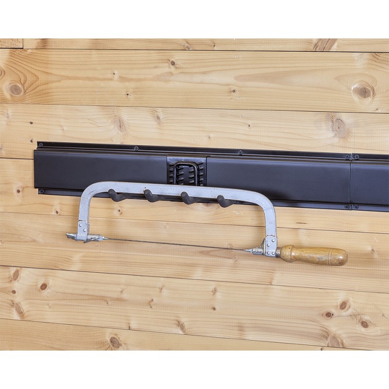Mit der Gerätehalter Schiene sorgen Sie auf schnelle und einfache Weise für Ordnung in Ihrem Garten und Ihrer Garage. Sie befestigen die Schiene mittels Schrauben horizontal an die Wand und benutzen dann die verschiedenen Powerplustools Hakensysteme (nicht im Lieferumfang enthalten) um Ihre Geräte ordentlich zu sortieren.