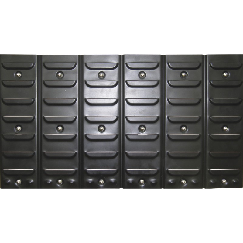 Abmessungen Metallwandhalterung: 63 x 34 cm. Plattenstärke 1 mm. mit schwarzer Pulverbeschichtung und Ø 6 mm. Bohrungen zur Wandmontage.