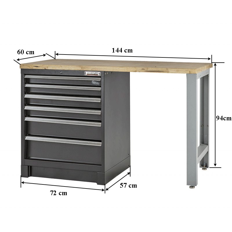Komplette Heavy duty Werkbank mit 60 cm tiefer Arbeitsplatte bestehend aus: 2 x Heavy duty Werkzeugschrank mit 6 Schubladen (Artikel-Nr: PP-T 1785S) Maße: 72 x 57 x 90 cm (B x T x H, Außenmaße ohne Arbeitsplatte) Alle Schubladen sind mit Rollenschienenlager ausgestattet