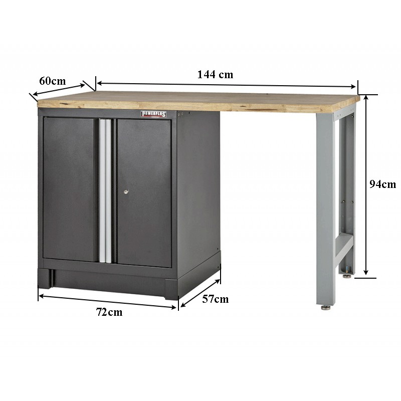 Gesamthöhe Werkbank inkl. Hartholzplatte: 94 cm.