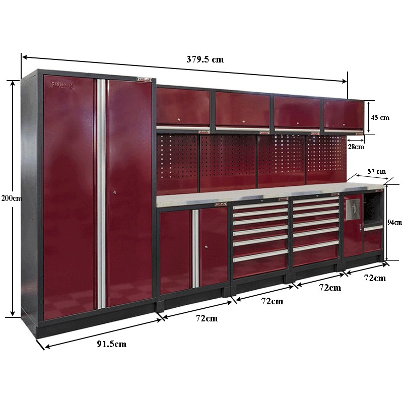 Maße Werkstattschrank: 200 x 91,5 x 57 cm. (Außenmaße H x B x T)