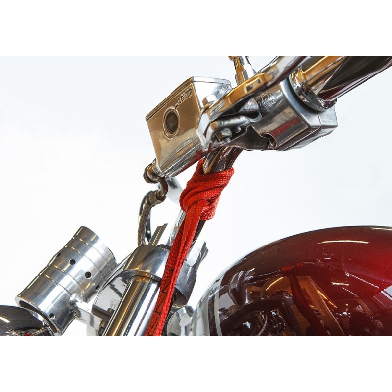 Da die Doppelschlaufe, keine Metallteile hat, ist Sie ideal um den Haken des Spanngurtes von den empfindlichen Verkleidungsteilen fernzuhalten.