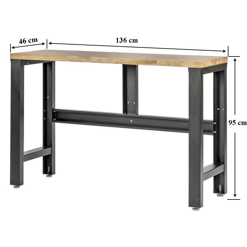 Die Stahlwerkbank mit Hartholzplatte bietet eine elegante und schlichte Lösung für Ihre Arbeitsbereiche. Mit einer großzügigen Größe von 136 x 46 x 95 cm ist sie perfekt für vielseitige Anwendungen und passt hervorragend zu unserer Premium-Schrankreihe in Farbe und Abmessungen.