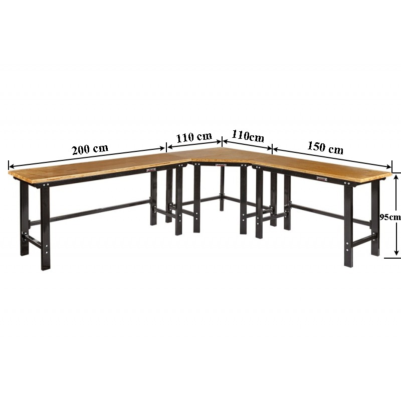 Übereck Werkbank mit 310 x 260 cm länge bestehend aus: