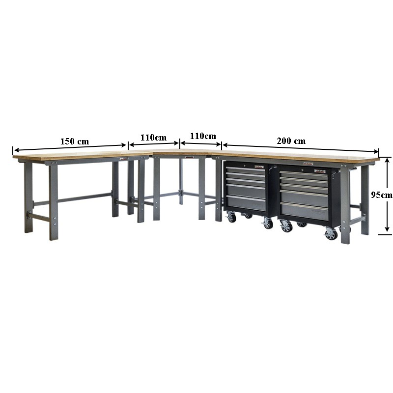 Übereck Werkbank Kombi in grau mit 310 x 260 cm länge bestehend aus: