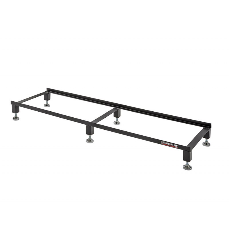 Stahluntergestell mit sechs höhenverstellbaren Füßen für zwei Premium Line Schränke.
