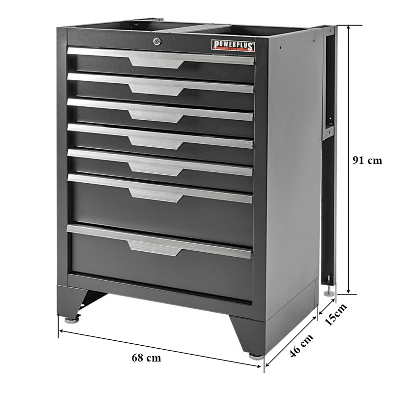 Unser beliebter 7-Schubladen-Werkzeugschrank bietet die perfekte Kombination aus Stabilität, Funktionalität und Design. Die fünf flachen und zwei tiefen Schubladen sorgen für eine optimale Aufbewahrung und Organisation von Werkzeugen, Zubehör und Materialien.
