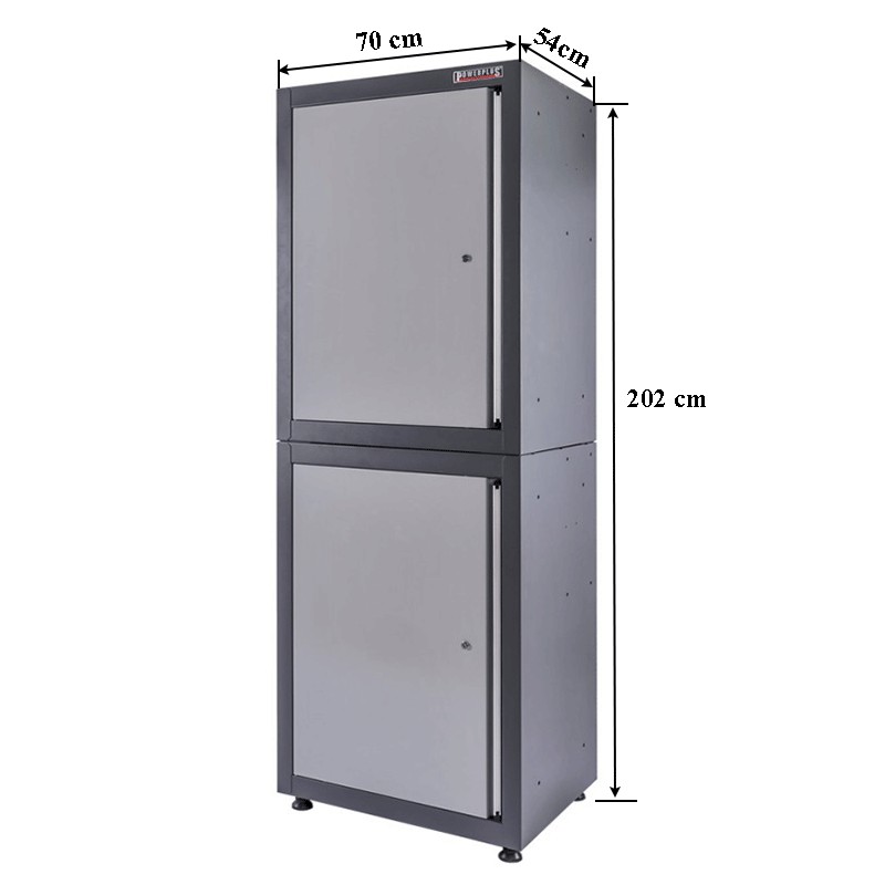 Der hochwertige Werkstattschrank 202 x 70 x 54 cm aus Metall ist die perfekte Lösung für alle, die Wert auf Stabilität, viel Stauraum und ein professionelles Erscheinungsbild legen. Der Schrank überzeugt durch sein industrielles Design in Grau und Anthrazit, das an eine Kühl-Gefrierkombination erinnert, und eignet sich ideal für die Werkstatt, die Garage, den Betrieb oder den Hauswirtschaftsraum