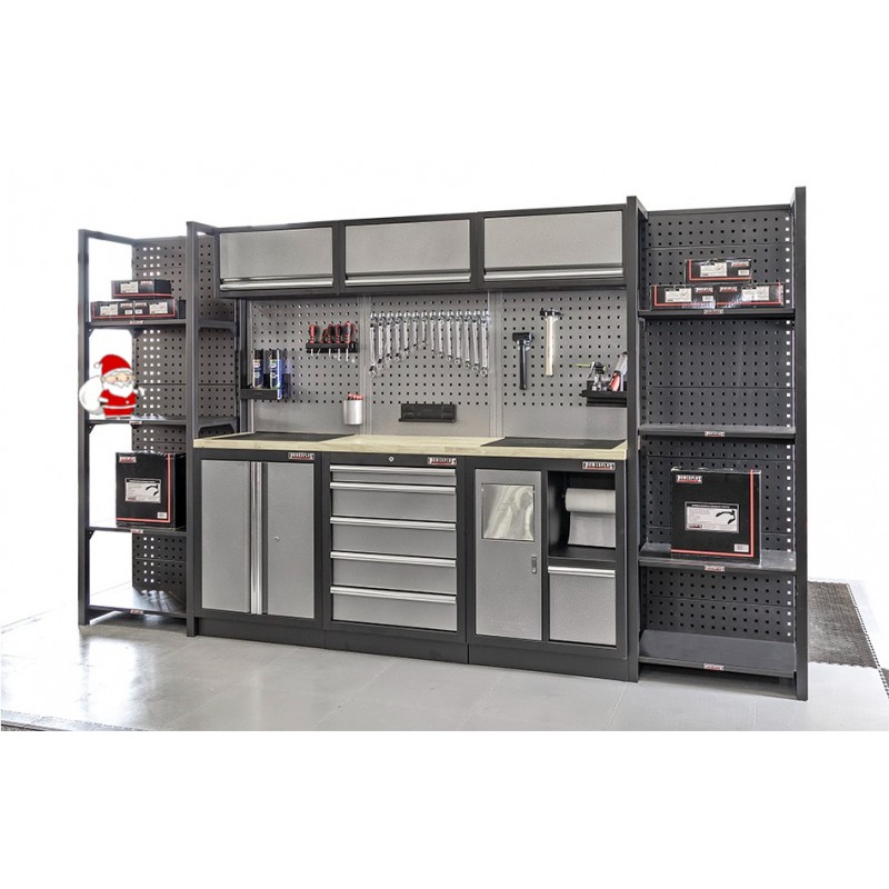 Komplettes Werkbank Set 342 cm mit Hartholzplatte bestehend aus: