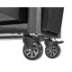 Ausgestattet mit 2 Schwenkrädern mit Bremse und 2 festen Rädern