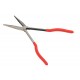 Extra langes Zangen Satz 9-teilig in Schaumstoffeinlage 1 x extra lange Flachrundzange 45 Grad gebogen, lange Backen, geeignet zum Greifen von Zündkerzensteckern und anderen runden Teilen. Zange vollständig geöffnet: 55 mm. und komplett geschlossen: Ø 19 mm. Gesamtlänge: 26,5 cm. Gewicht: 258 Gramm.